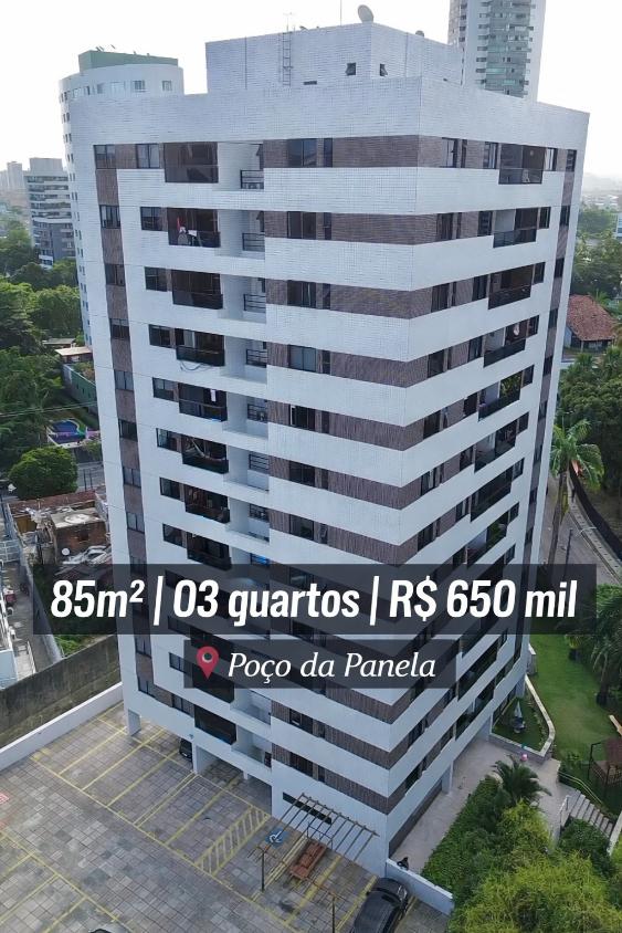 Descrição do Imóvel ?? Poço da Panela ?? Venha morar no coração do Poço. ?? Imóvel:? 85m²? 03 quartos (01 suite) + DCE? Sala para 02 ambientes? WC Social ? Cozinha? Área de serviço ? 02 vagas cobertas ?? Empreendimento:?? Salão de festas ???? Piscina ?? Playground?? Churrasqueira?? Quadra Entre em em contato:?? 81) 9 99261122?? Direct R$ 650 mil Condomínio: R$ 1.350,00