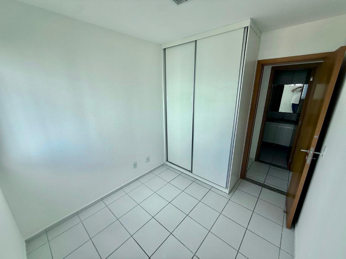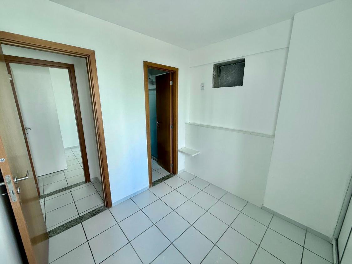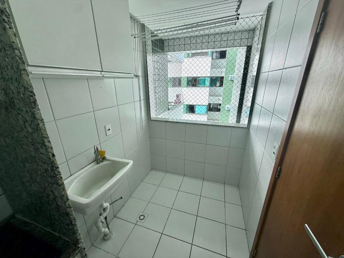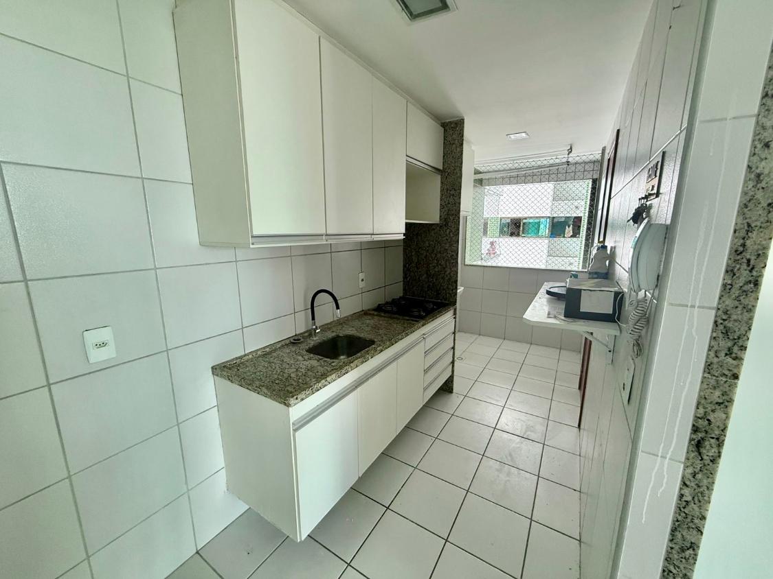 Apartamento com 66 m², 3 quartos (1 suíte), sala para dois ambientes, varanda, cozinha e área de serviço com banheiro de serviço.