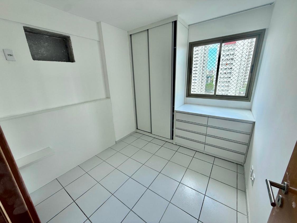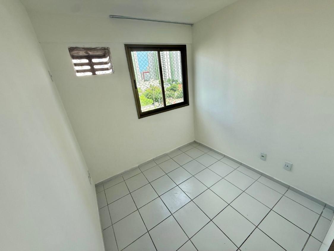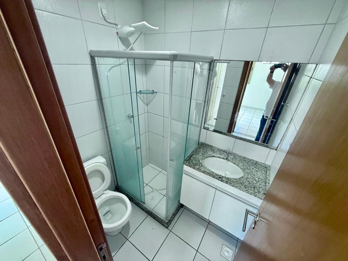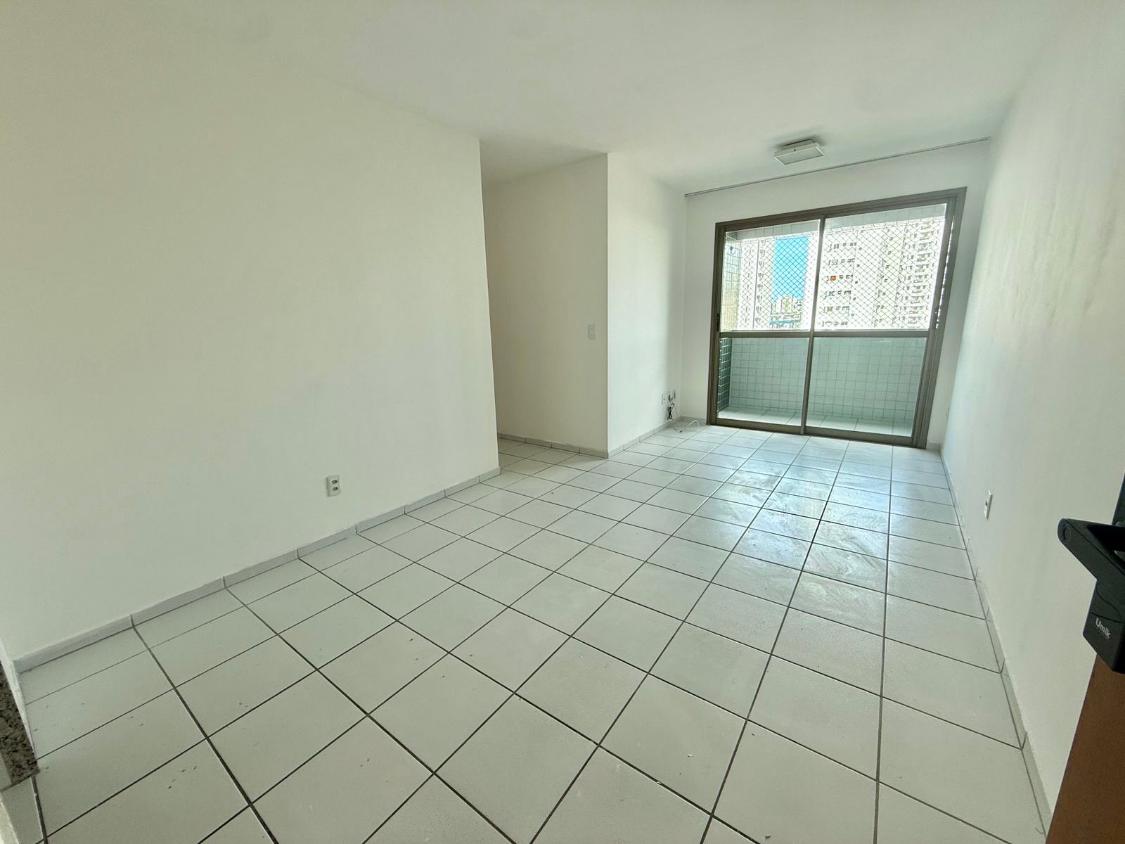 Apartamento com 66 m², 3 quartos (1 suíte), sala para dois ambientes, varanda, cozinha e área de serviço com banheiro de serviço.